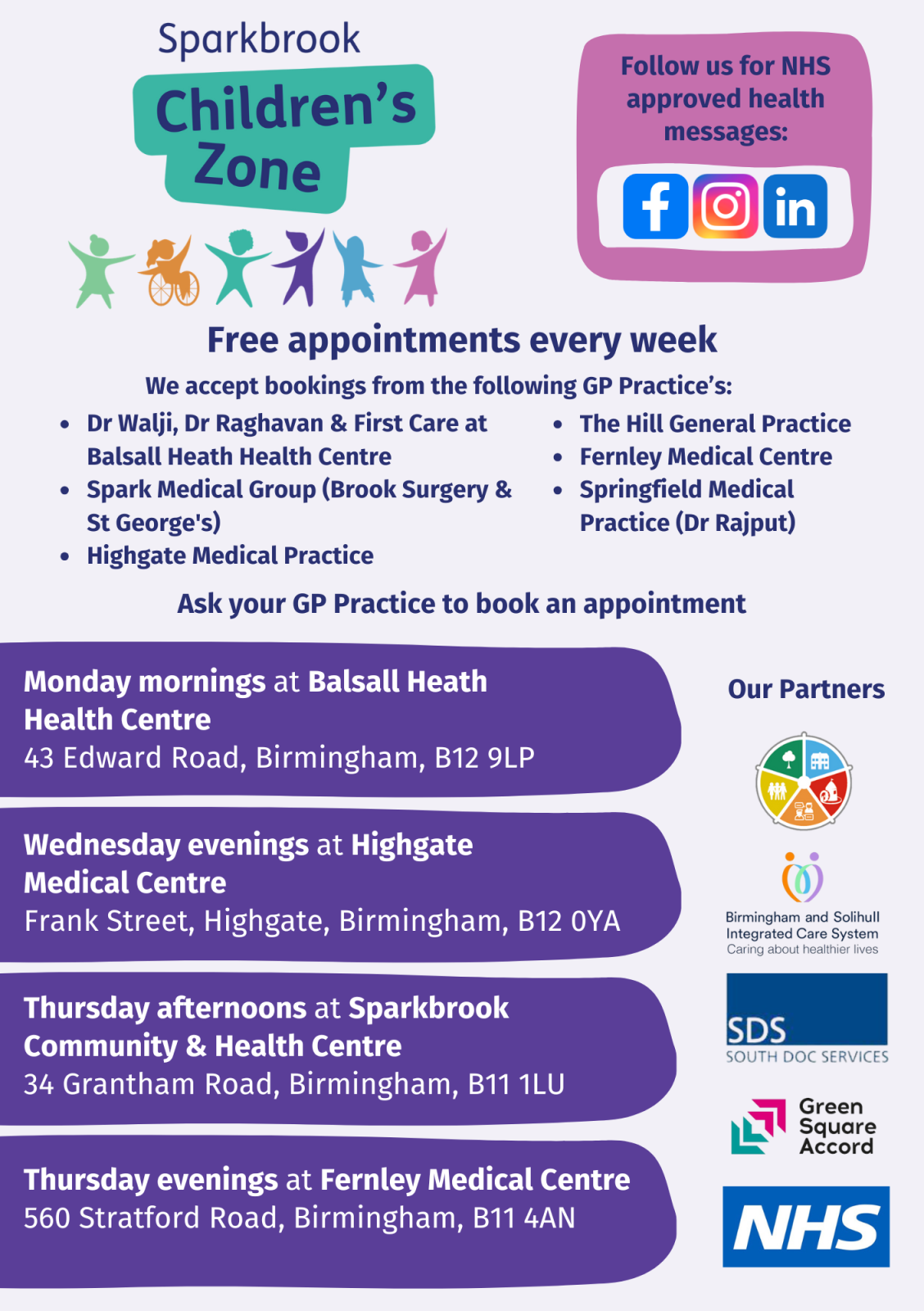 There will be someone from the PTA joining and also someone from Spark Brook Children's Zone, who support children's health and well-being. They also offer weekly appointments with a GP/Nurse. Please see the attached flyer.